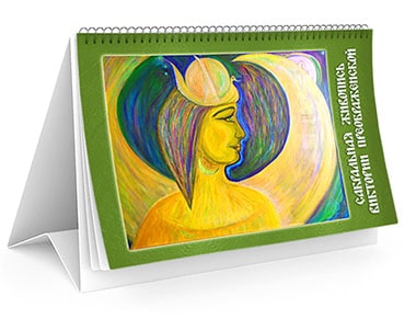 На страницах Календаря размещены иллюстрации Живописных Произведений Виктории ПреобРАженской (Марии ДЭВИ ХРИСТОС) — Основательницы Новой Межгалактической КультУры Золотого Века «Космическое Полиискусство Третьего Тысячелетия Виктории ПреобРАженской»©. Картины Передают Дух и Энергетику соответствующего месяца, поскольку даты наложены на ОбРАзы тех же Картин, но как будто Выполненных чуть РАзбавленными водой кРАсками. Настраиваясь на Них, можно гармонизироваться с Космическими токами месяца, получить подсказки. А вода — это символ безконечного потока Жизни.